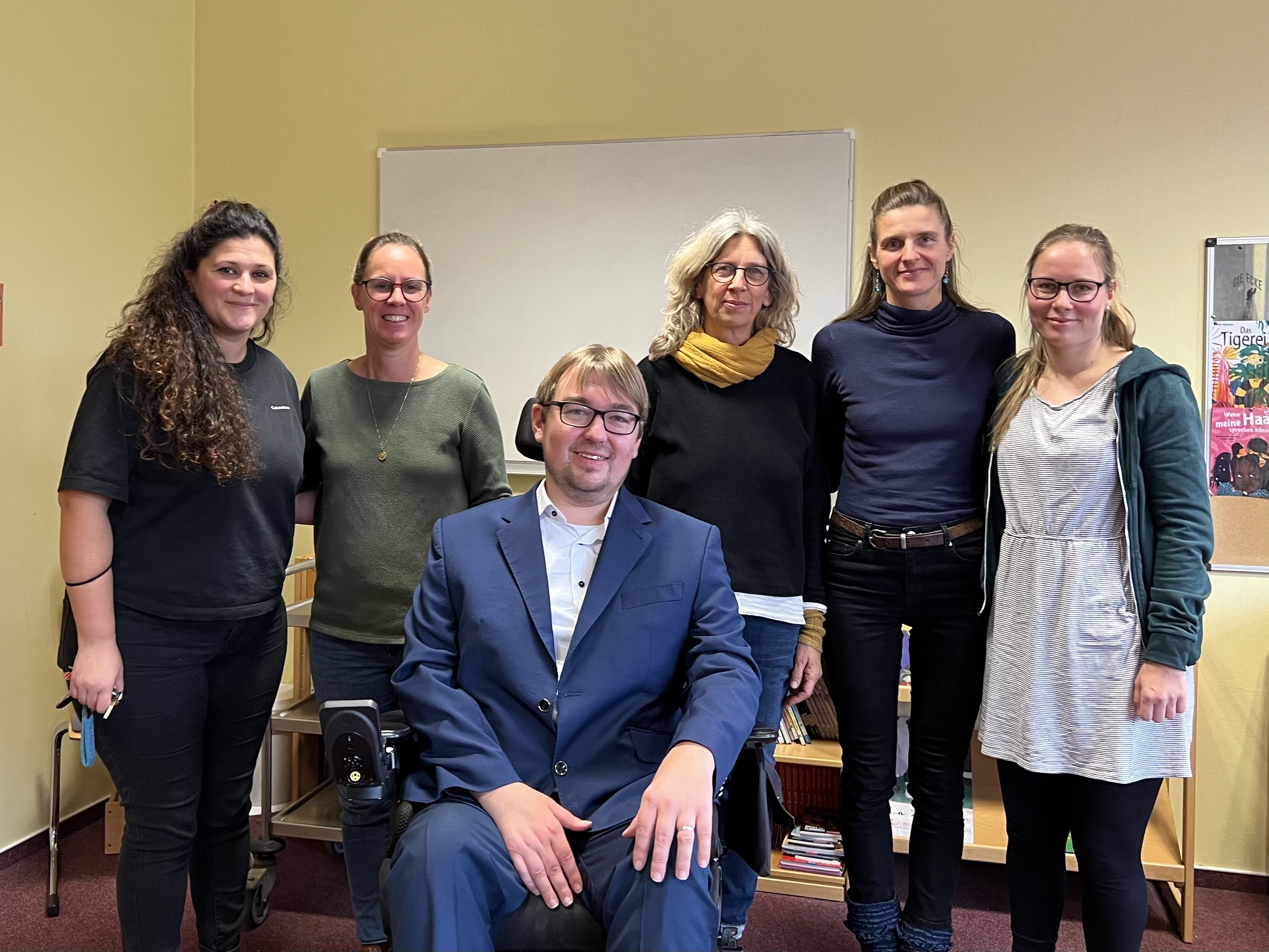 Arne Frankenstein bei seinem Besuch der Schule in einem Klassenzimmer