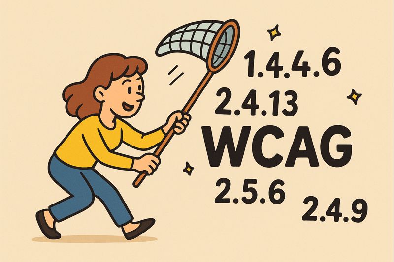 Eine Frau versucht mit einem Schmettelingsnetz WCAG Kriterien einzufangen