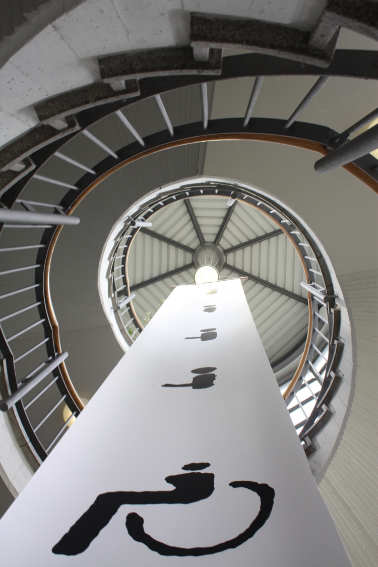 Auf diesem Bild ist noch einmal das 7 Meter lange Banner zu sehen, welches im Treppenhaus des Verwaltungsgebäudes hängt. - Datei öffen/herunterladen (jpg, 479.8 KB)
