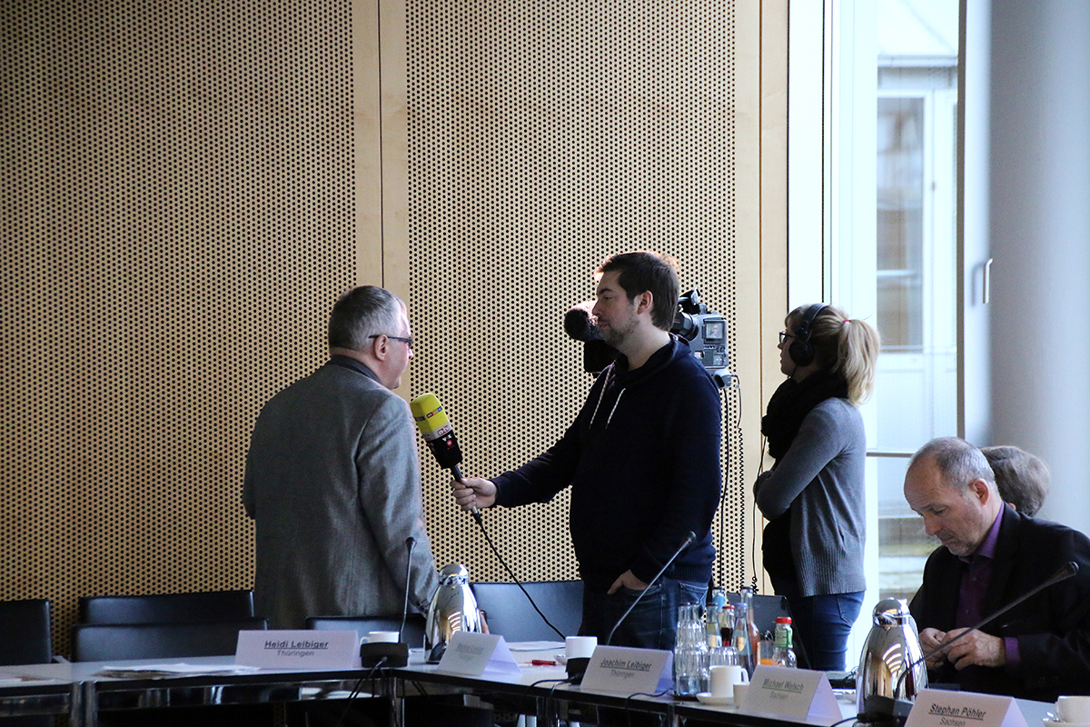 Auf dem Bild ist der Beauftragte aus Sachsen zu sehen, wie er gerade die "Bremer Erklärung" durchblättert. - Datei öffen/herunterladen (jpg, 629.6 KB) -