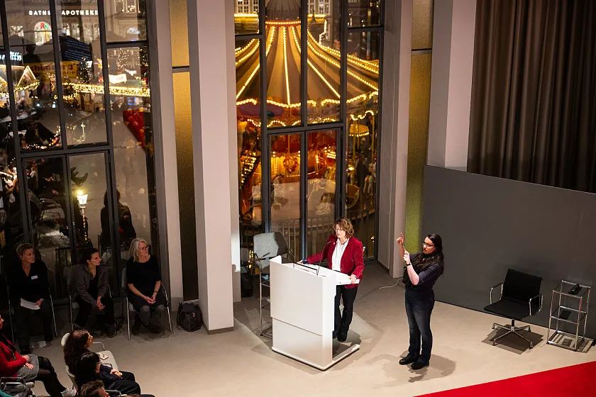 Am 4. Juni 2025 haben die Zentralstelle der Landesfrauenbeauftragten, der Landesbehindertenbeauftragte sowie der Bremer Rat für Integration zu der Veranstaltung "Wer bleibt auf der Strecke – Kürzungen bei der Arbeits- und Sprachförderung treffen Frauen, Migrant*innen und Menschen mit Behinderungen" in den Festsaal der Bremische Bürgerschaft eingeladen. Es ging um die Frage, wie im Land Bremen trotz knapper Mittel eine geschlechtergerechte und inklusive Beschäftigungs- und Integrationspolitik gestaltet werden kann sowie über mögliche Lösungswege.