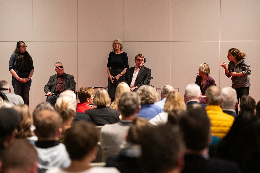 Im Zentrum des Festakts stand eine Gesprächsrunde mit Dr. Joachim Steinbrück und Arne Frankenstein, moderiert von Dörte Maack. Diskutiert wurden Fragen zum Rollenverständnis, zur Entwicklung der Behindertenpolitik, zur Zusammenarbeit mit Politik, Verwaltung und Zivilgesellschaft sowie zu zentralen Meilensteinen und Herausforderungen der vergangenen Jahre.