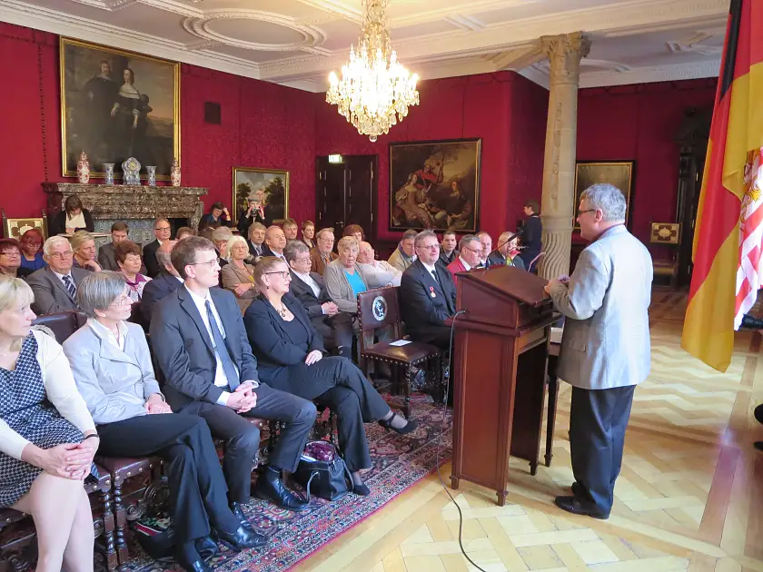 Für ihren erfolgreichen Einsatz für Menschen mit Behinderungen wurden Achim Giesa und Detlef Erasmy von Bundespräsident Joachim Gauck mit der Verdienstmedaille der Bundesrepublik Deutschland ausgezeichnet. Sie haben sich maßgeblich für die Verkleinerung des Schwerbehindertenausweises eingesetzt – von Postkartengröße auf modernes Scheckkartenformat. Staatsrat Prof. Matthias Stauch (Senator für Wirtschaft, Arbeit und Häfen) übernahm am 2. April 2014 die Ehrung im Kaminsaal des Bremer Rathauses. Auch der Landesbehindertenbeauftragte der Freien Hansestadt Bremen, Dr. Joachim Steinbrück nahm an der Ehrung teil und sprach zu den geladenen Gästen.