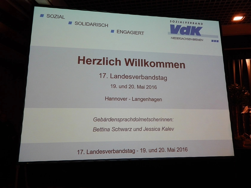 Unter dem Motto "SOZIAL - SOLIDARISCH - ENGAGIERT" veranstaltete der Sozialverband VdK Niedersachsen-Bremen am 20. Mai 2016 einen Festakt anlässlich seines 17. Ordentlichen Landesverbandstags in Hannover-Langenhagen. Joachim Steinbrück stellte in seinem Grußwort die Bedeutung des Sozialverbands VdK in den Vordergrund. Neben dem Bremer Beauftragten, nahm auch Petra Wontorra in ihrer Funktion als Landesbeauftragte für Menschen mit Behinderungen Niedersachsen teil.