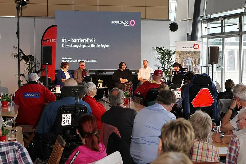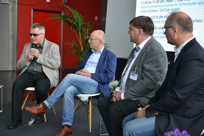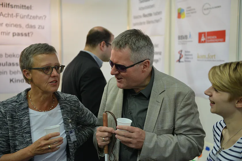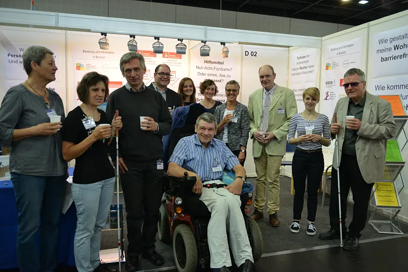 Zusammen mit dem Blinden- und Sehbehindertenverein Bremen e.V., dem Verein Selbstbestimmt Leben Bremen e.V., dem Verein kom.fort – Beratungsstelle für barrierefreies Bauen und Wohnen sowie dem Stadtführerprojekt „Barrierefreies Bremen – Informationen für Alle“ informierte das Büro des Landesbehindertenbeauftragten an einem Gemeinschaftsstand über die aktuelle Behindertenpolitik im Land Bremen. Neben vielen Gesprächen mit interessierten Messebesuchern nahm der Landesbehindertenbeauftragte ferner an zwei Podiumsdiskussionen teil. Unter anderem mit der Landesbeauftragten aus Niedersachsen, Petra Wontorra diskutierte Joachim Steinbrück am 9. Juni während einer Dialogveranstaltung auf Einlad